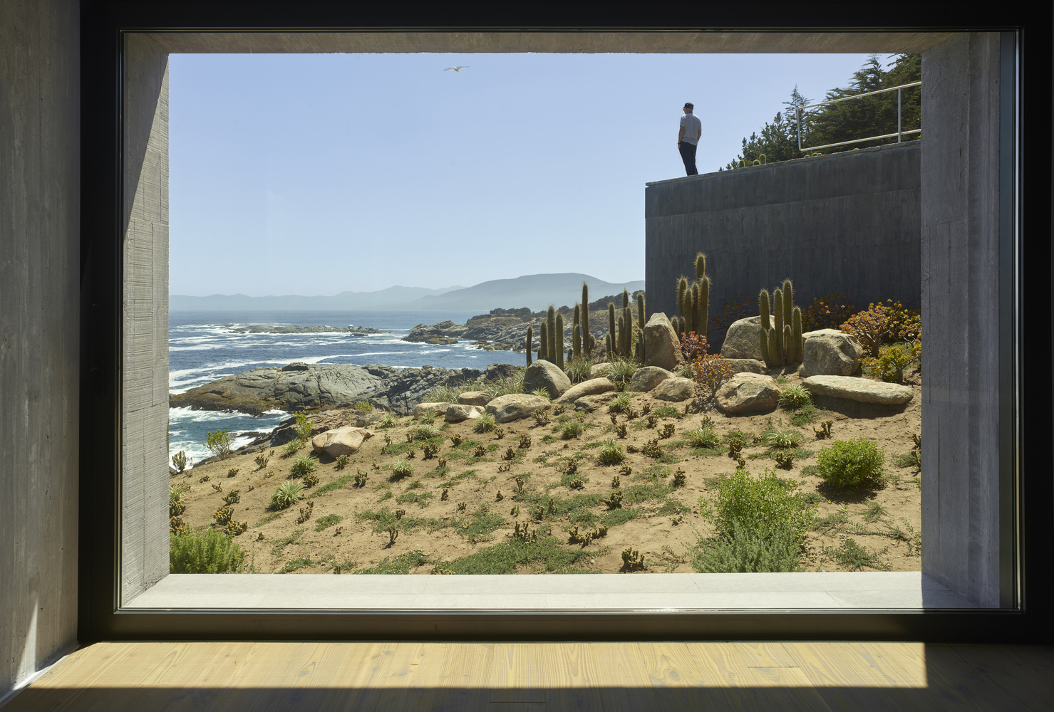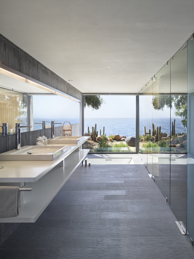 The 6500m2 plot of land is characterized by a steep slope of 20 meters in height (20% gradient). One of the main objectives of the project was to create a horizontal plane that would allow for inhabiting this slope. A large podium that allows for inhabiting and highlighting the force of the landscape; nature, the ocean view, and the sunsets.
